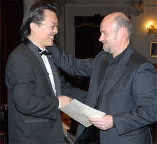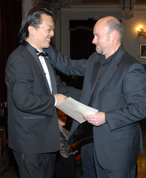 Paolo Coni consegna il primo premio a Jung Il Kim, dietro Olga Kotlyarova.